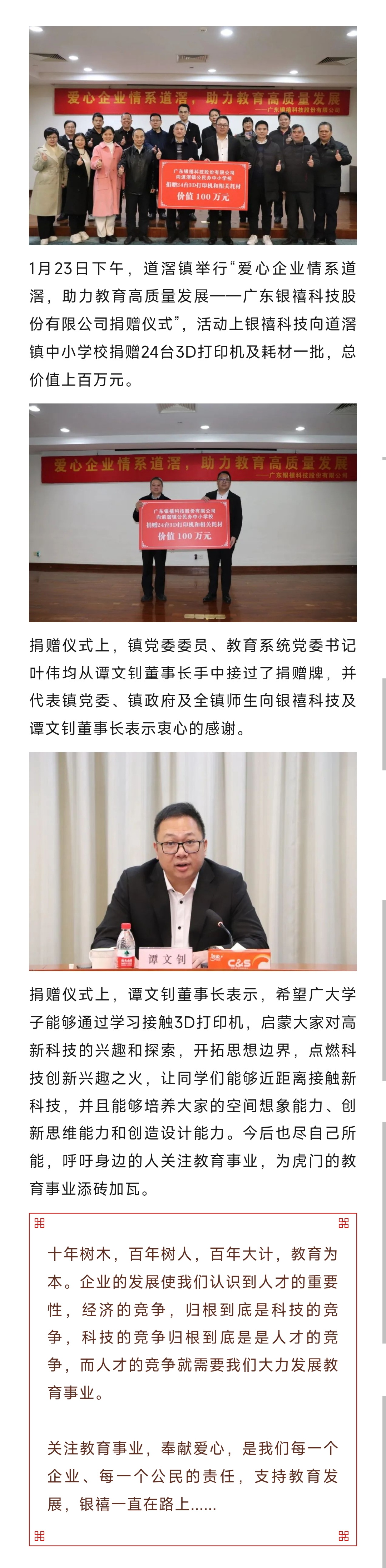 科技筑夢未來丨銀禧科技向道滘鎮(zhèn)教育管理部門捐贈了一批3D打印機(jī)